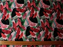 A top-quality linen/cotton blend with an abstract floral design. Beautiful strong shades of green with a splash of red for gorgeous tops and dresses. |