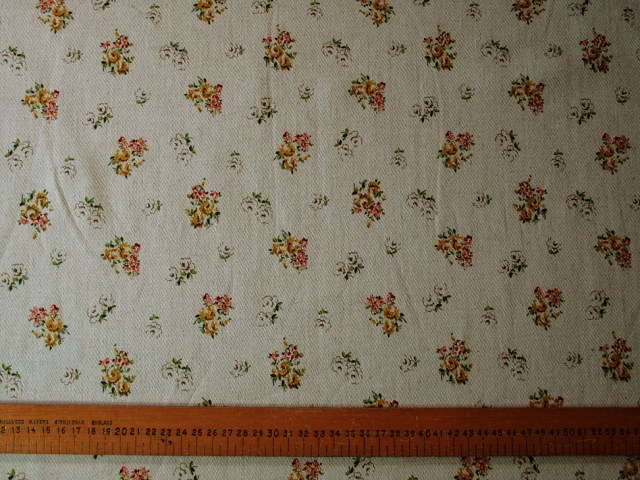 A gorgeous linen/cotton blend with a twill texture and a pattern of occasional sprays of tiny flowers. Perfect for dresses and separates. |
