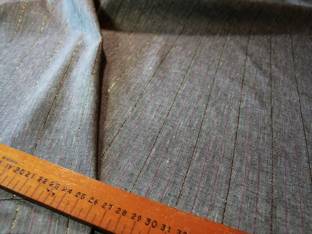 A gorgeous linen weave in a rich grey-brown shade with tiny subtle stripes of pink and gold. Perfect for trousers, casual tops and layering. |
