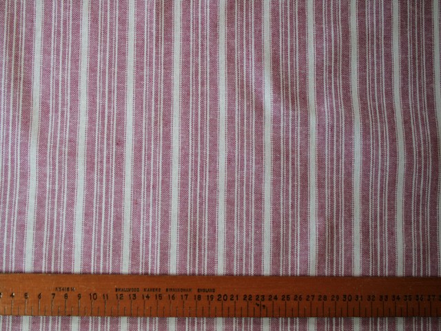 This luxurious linen/cotton blend has irregular vertical stripes in warm pink. Very much on-trend for the season and ideal for dresses and separates. |