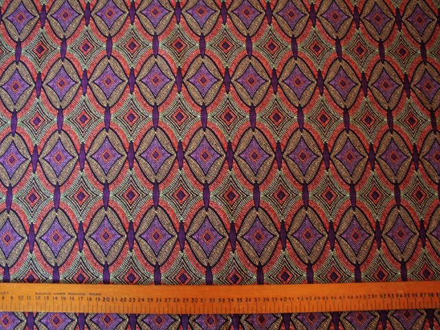 A really lovely blend of viscose and linen. Fine and drapey for dresses and tops, it has a striking design in rich, spicy shades. |
