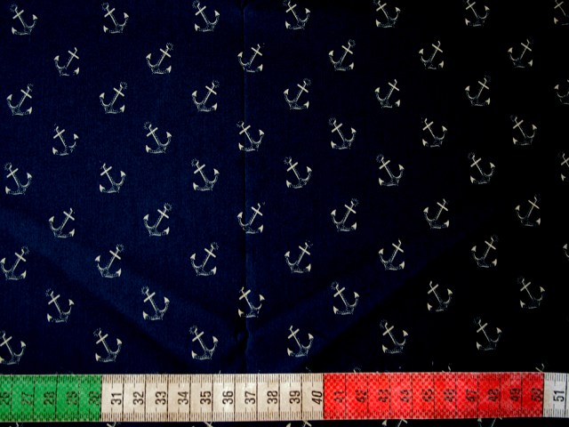 Crisp cotton poplin with a smart design of small anchors. A good choice for shirts, dresses, children's wear and home ware. |