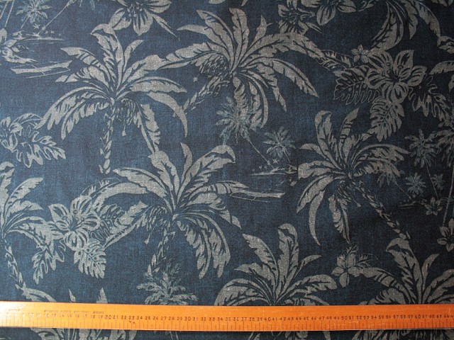 An exceptional blend of cotton and linen from a top designer. The pattern is gentle palm trees and tropical islands. Beautiful for dresses and separates. |