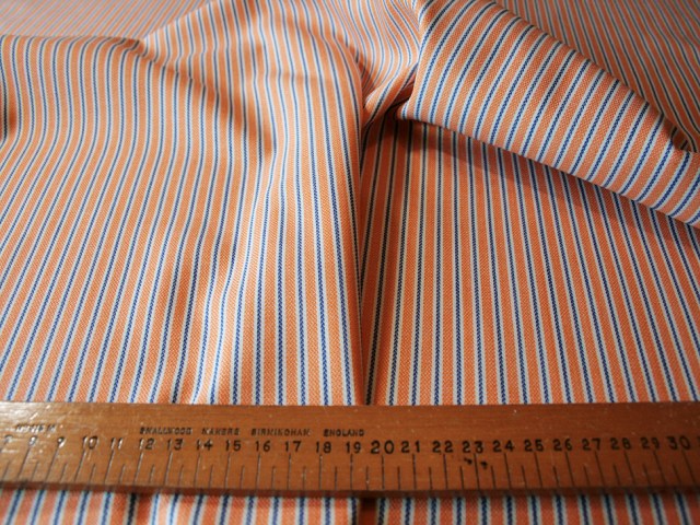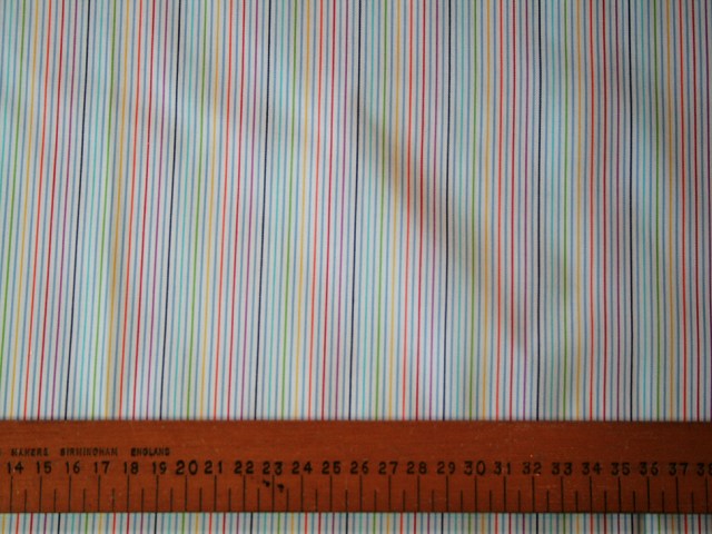 This gorgeous cotton lawn from Switzerland has fine stripes in the seven colours of the rainbow, with light blue in between. Perfect for a fresh shirt or blouse. |