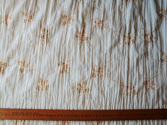 Fine white poly/cotton embellished with tiny sprigs of embroidery - like broderie anglais but with no holes! Perfect for Spring/summer blouses, skirts and dresses. |