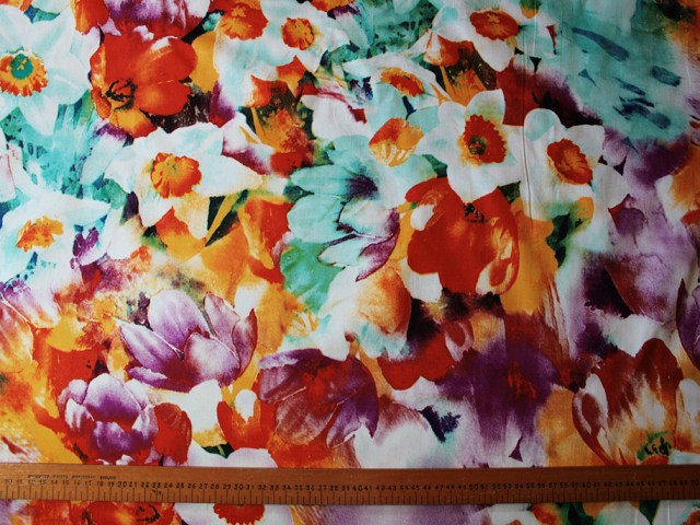 An eye-catching floral design in sustainable tencel. A soft blend of beautiful colours, ideal for dresses and tops. |