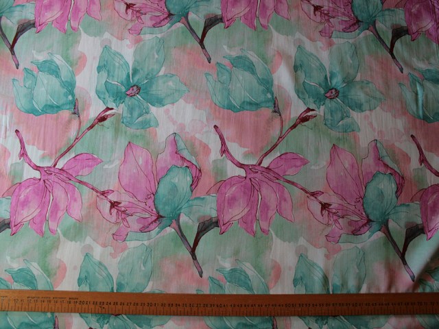 This pretty, bright cotton with a stylish floral design is a great choice for Spring/Summer blouses and dresses. |