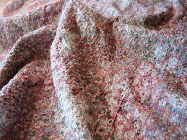 A cotton-rich gauze from France with a tiny, dainty floral design in soft vintage shades. Lovely for blouses, skirts and dresses. |