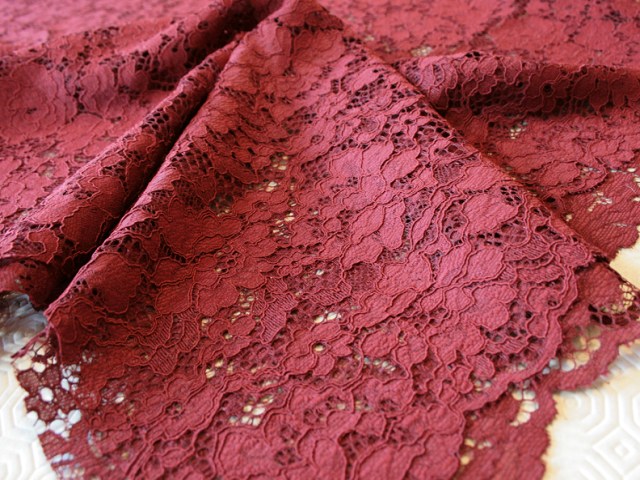 A top quality corded lace in the season's favourite shade. It has a scalloped selvedge on both sides and is great for special occasion wear. |