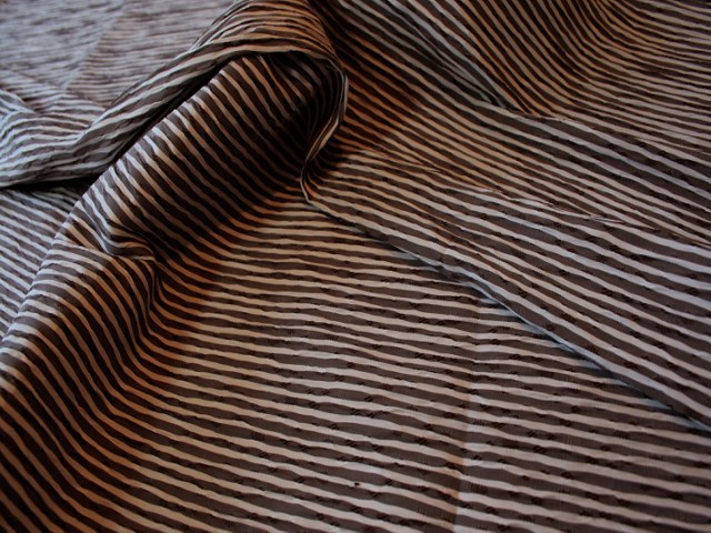 This premium crisp stripe from Belgium has an interesting texture, a slight lengthwise stretch and horizontal stripes. It is easy-care and wider than usual for shirts, blouses, etc. |