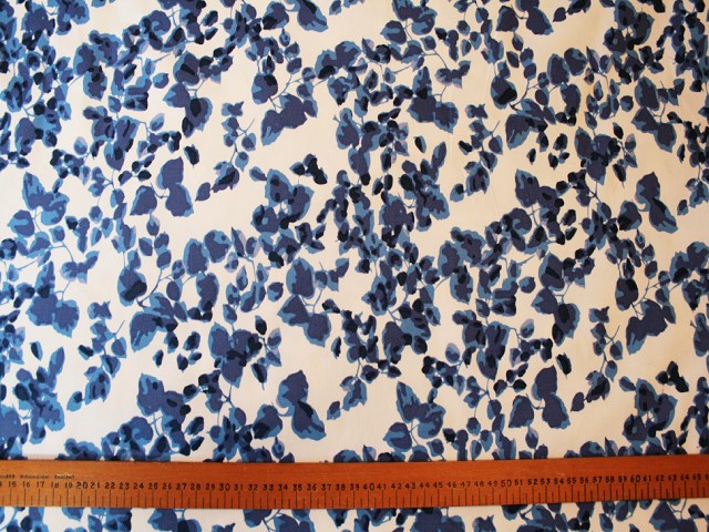 A top quality pure cotton from Italy with a design of deep blue flowers. A timeless choice for dresses and tops. |