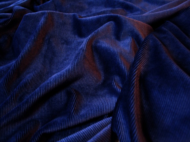 A rich blue colour and a corded velour. The perfect fabric for comfortable, relaxed casual wear. |